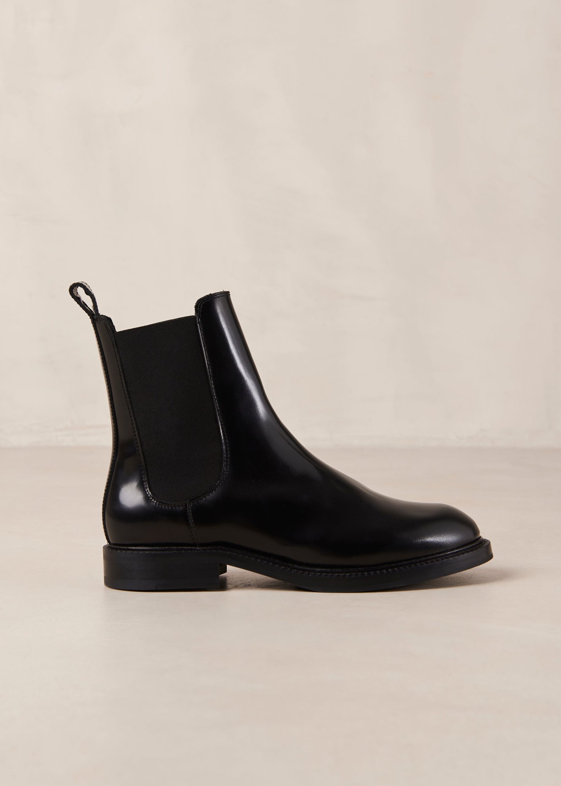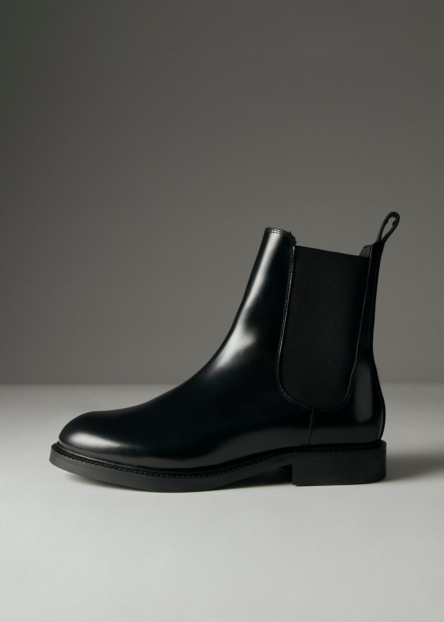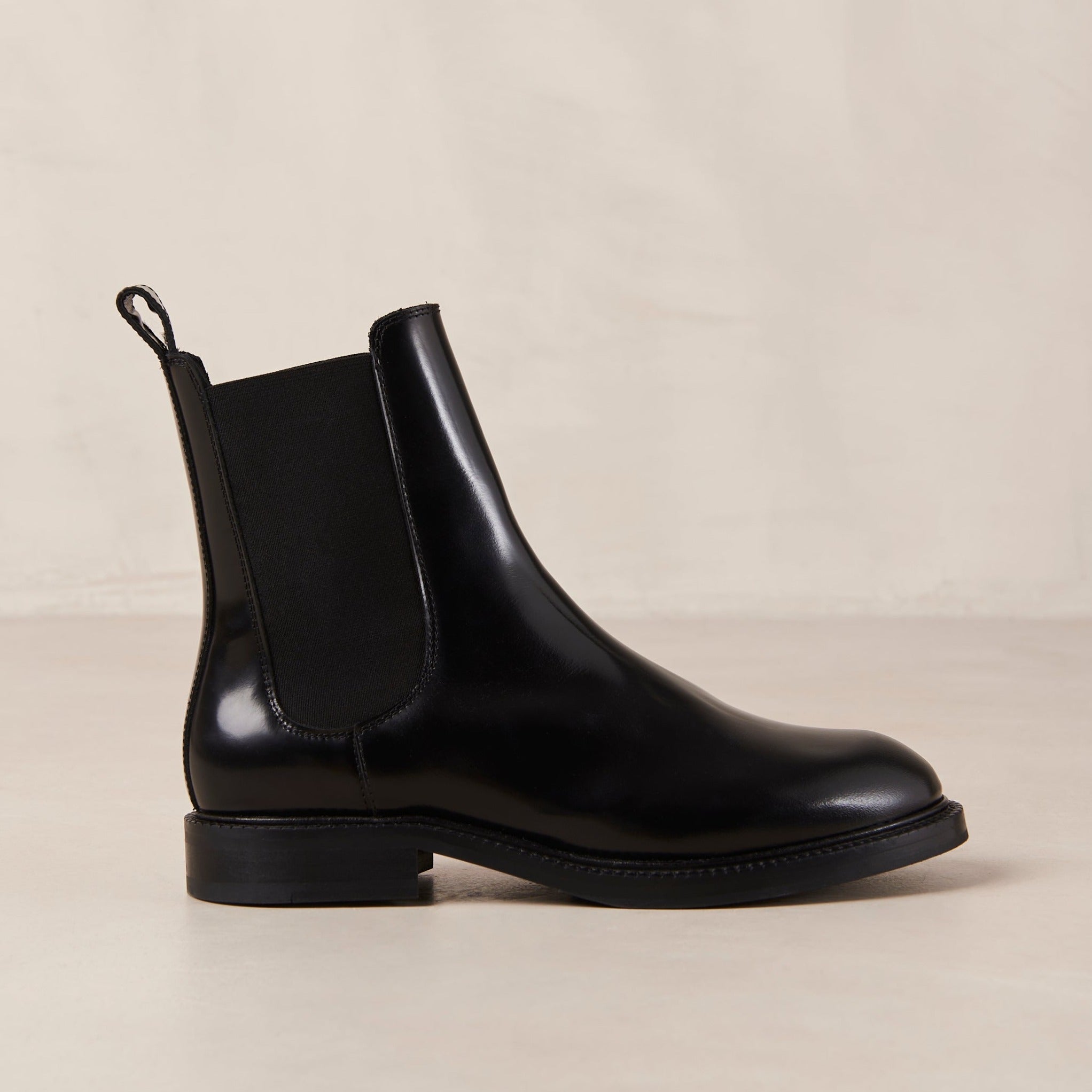 Lanz is a classic Chelsea boot crafted from black leather with a glossy finish. As classic as it comes. it has elasticated sides for comfort. plus handy pull tabs at the back. Rubber soles provide traction with every step.
