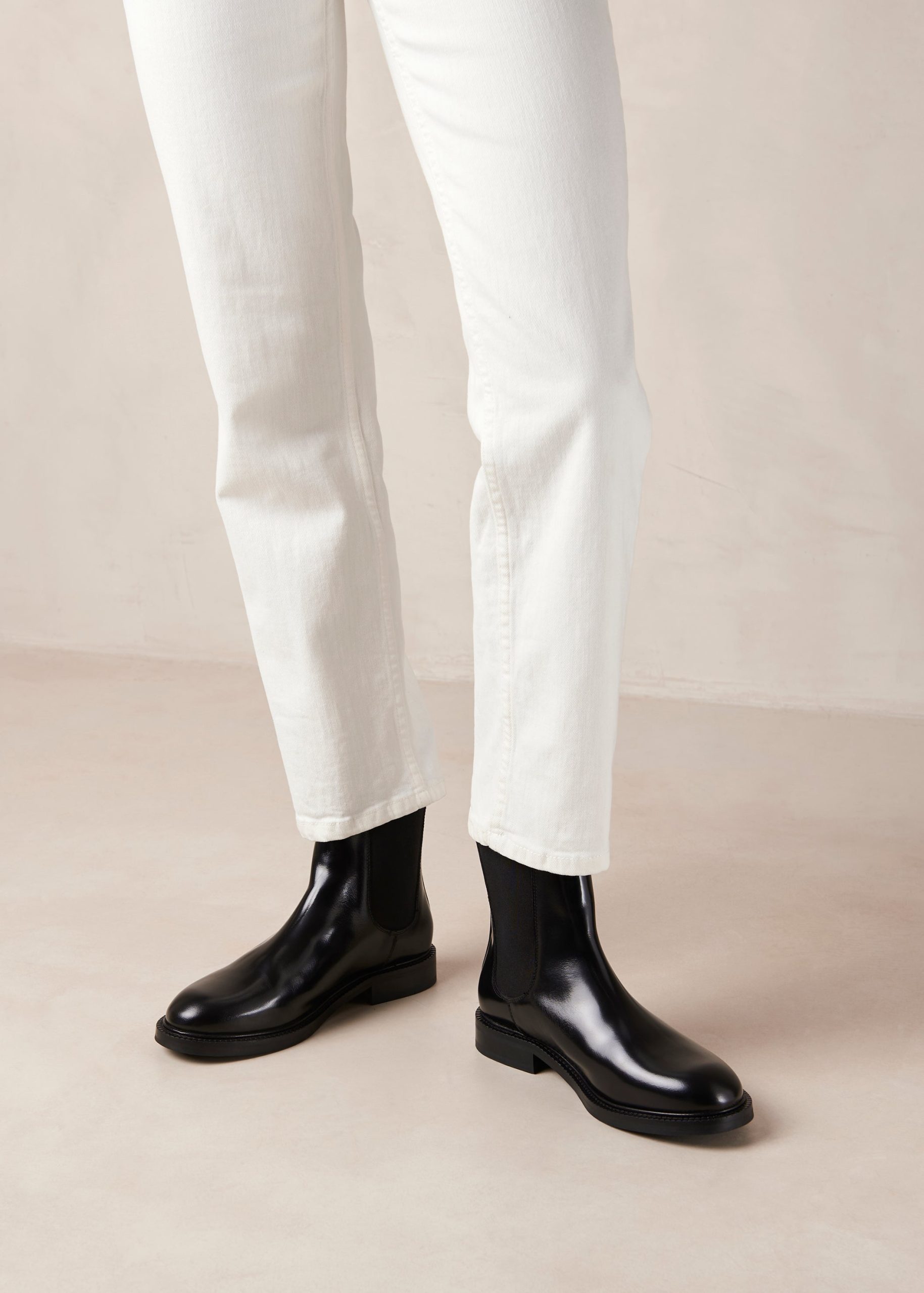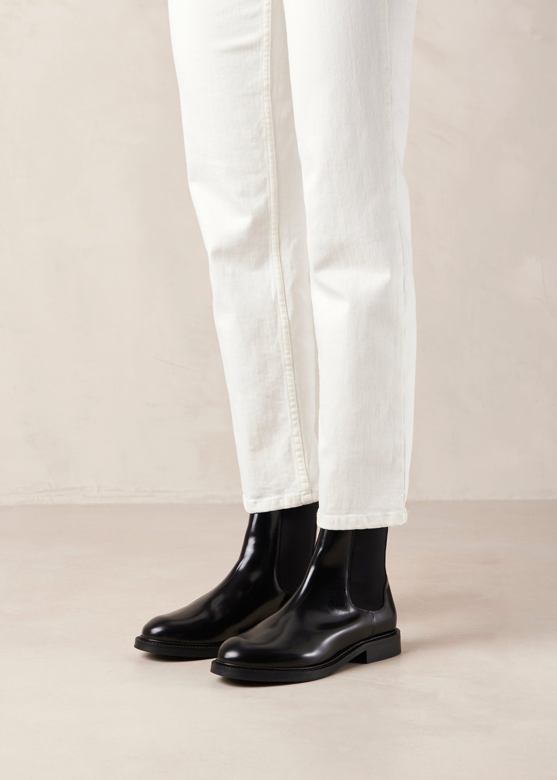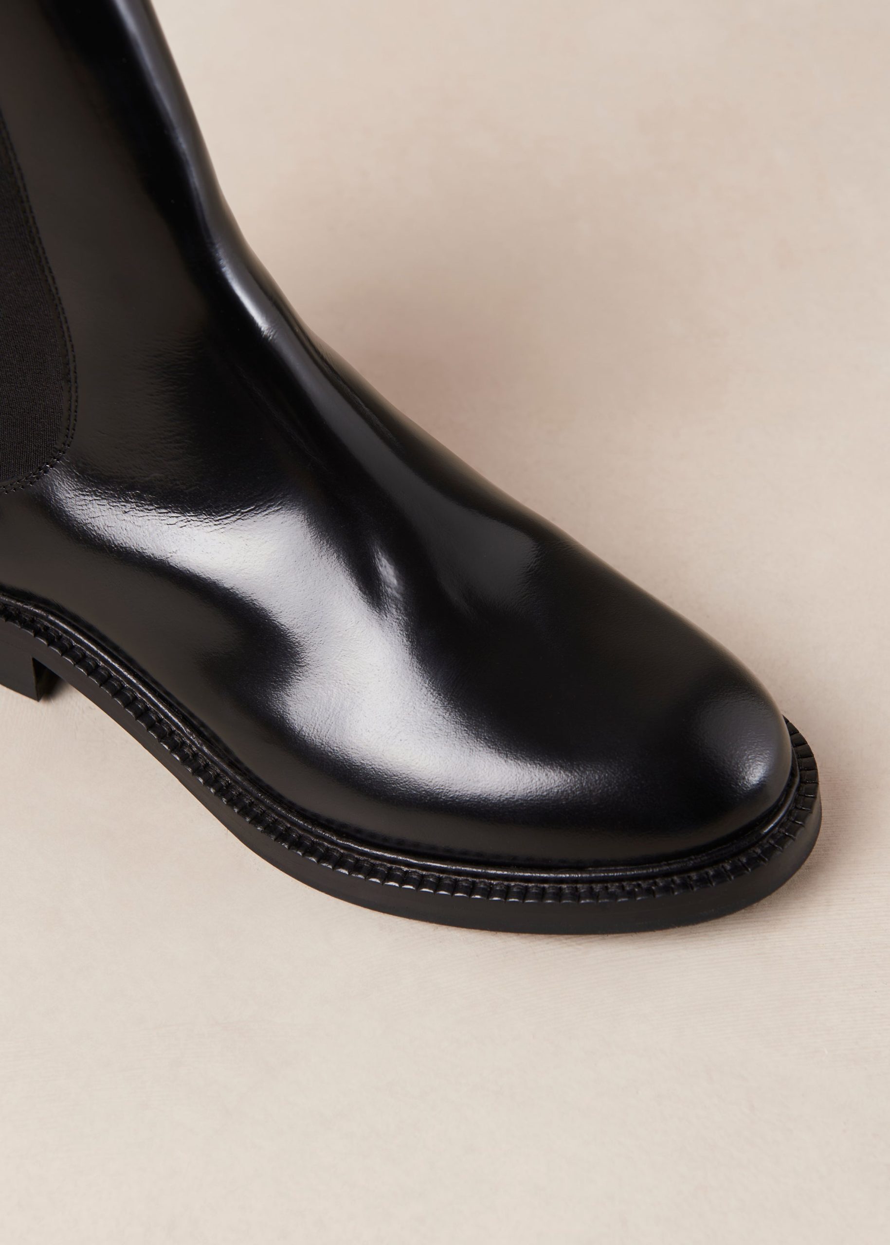 Lanz is a classic Chelsea boot crafted from black leather with a glossy finish. As classic as it comes. it has elasticated sides for comfort. plus handy pull tabs at the back. Rubber soles provide traction with every step.